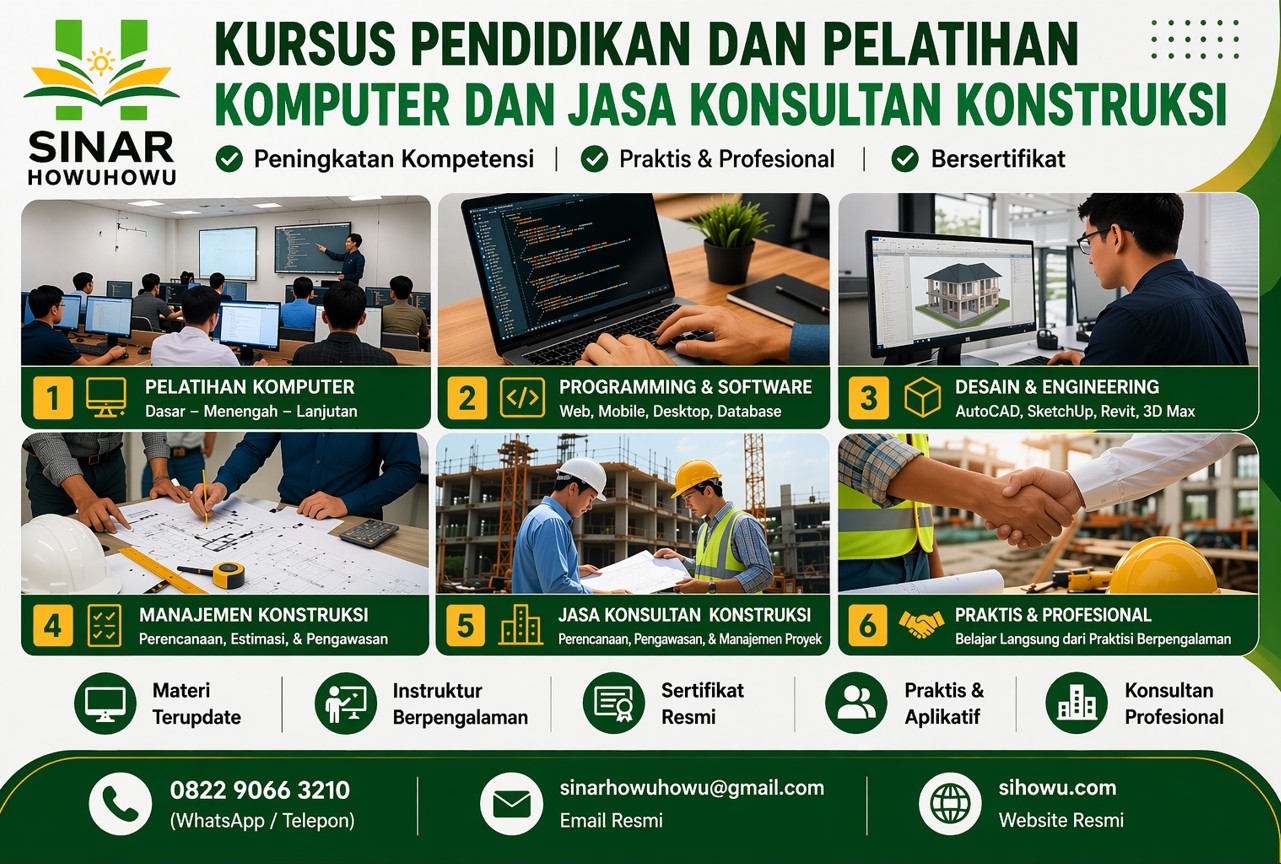 Dengan penuh rasa syukur, saya menyampaikan apresiasi yang setinggi-tingginya atas kepercayaan dan dukungan yang diberikan kepada CV. Sinar Howuhowu. Sejak awal berdiri, perusahaan ini hadir dengan komitmen untuk menjadi mitra terbaik dalam berbagai sektor, termasuk pendidikan dan pelatihan, jasa konsultasi konstruksi, periklanan, perdagangan, percetakan, serta penerbitan buku dan jurnal ilmiah.